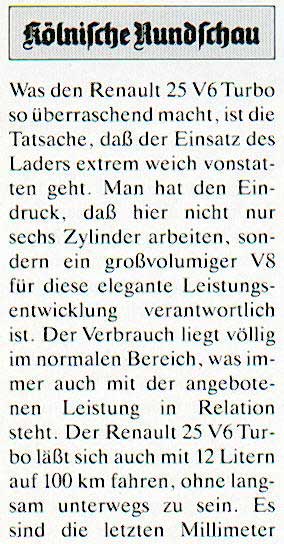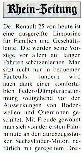 Der Renault 25 faszinierte nicht nur seine Fans. Auch die Deutsche Presse
